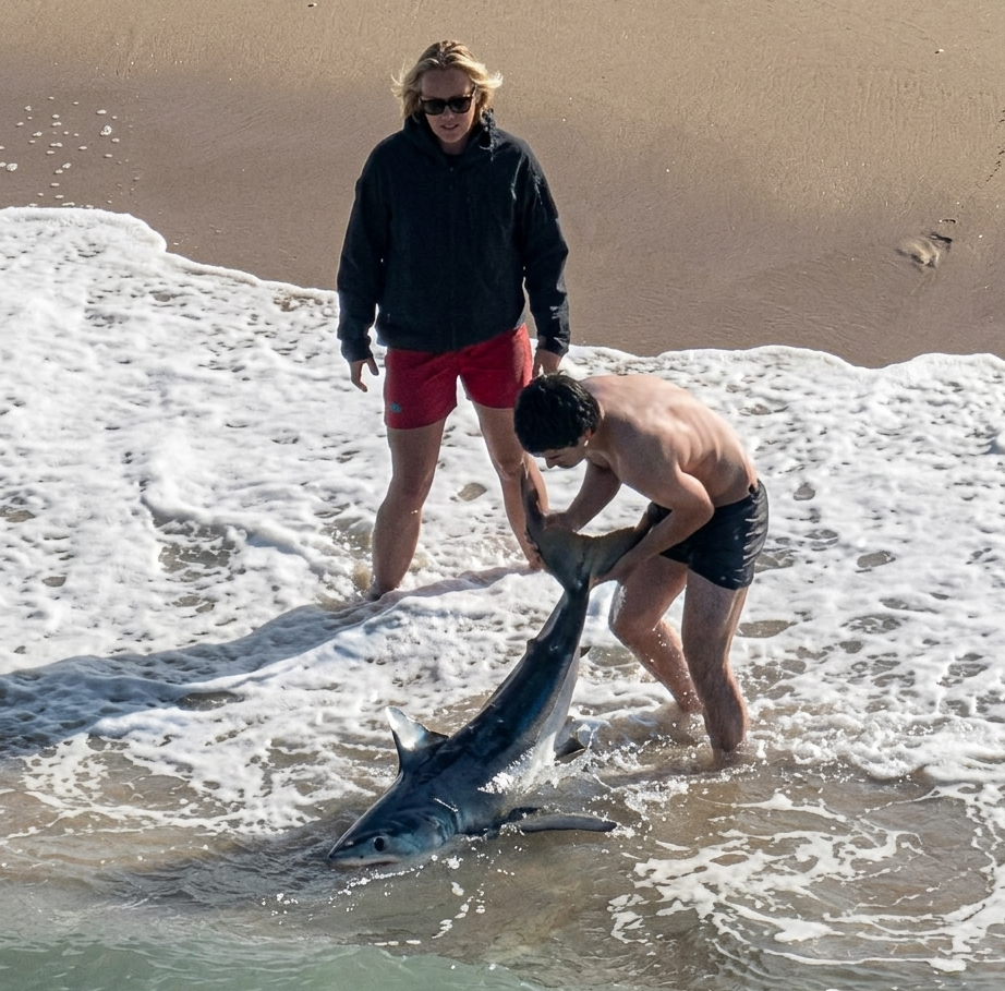 这一过程被附近居民亚历山德拉·加里(Alexandra Garry)用手机记录下来。她当时正在海边遛狗,注意到两名渔民费力收线,最初还以为他们钓到的是金枪鱼之类的大型鱼类,直到目标逐渐靠近岸边,才发现竟是一条鲨鱼。